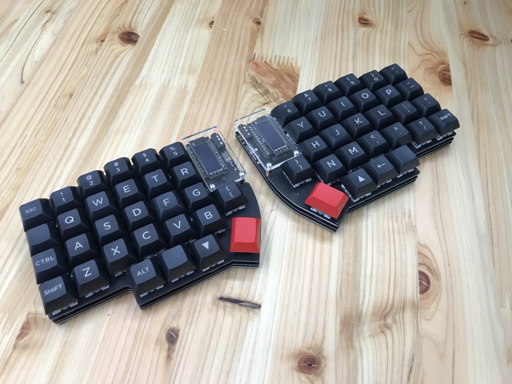 何より、分割キーボードでありつつ、キー配列はStaggeredなので、左右のキーボードを合体させて従来のキーボードのように使うことも可能。
