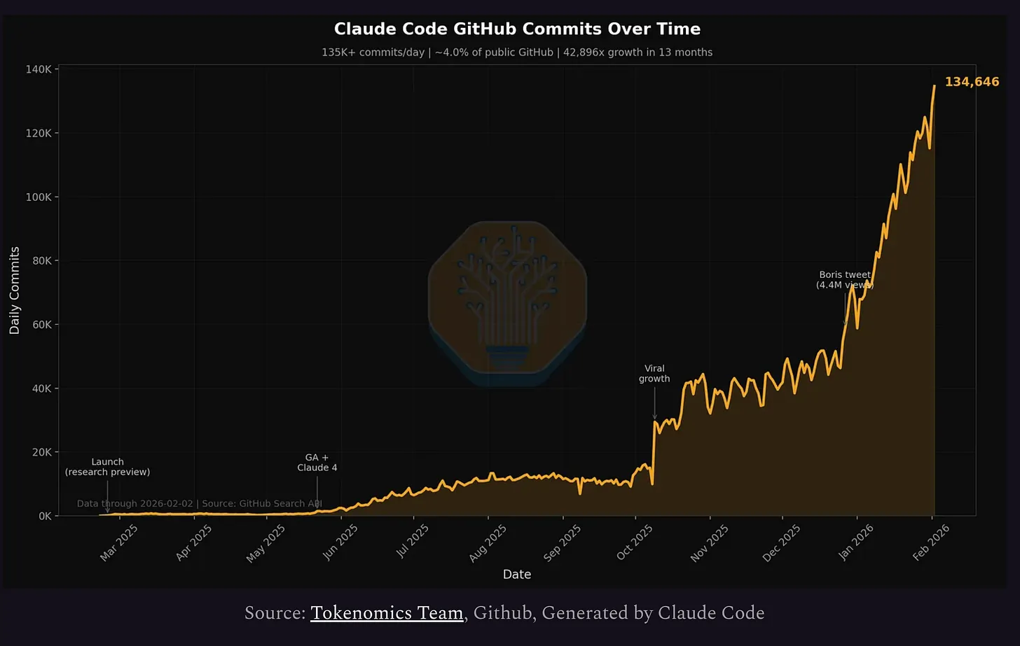 AIの流れはもう止められない。人間社会にとって、AIは既になくてはならない必需品だ。ソフトウェア業界では、Claudeで書かれたGithubコミット数は右肩上がり。