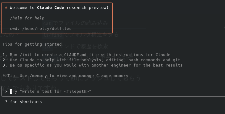 sudoを使ってインストールするとclaudeが権限周りでブーブー言うのでなるべく使わないようにしましょう。sudoなしでnpm i -gを動かすには: https://github.com/sindresorhus/guides/blob/main/npm-global-without-sudo.mdインストールが終わったら、claudeで起動します。ブラウザ上にAnthropicアカウントへのログイン画面が表示されるので支持通りログインします。こんな画面が表示されたら無事インストール&ログイン完了です。