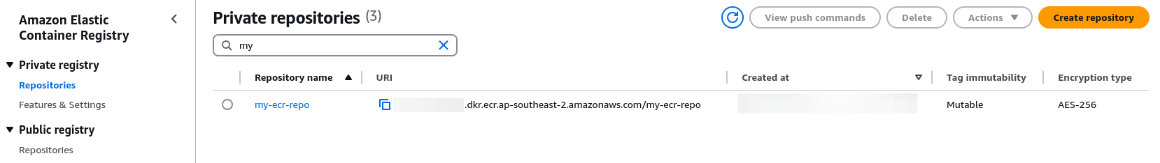 Enter a value: XXXXX.dkr.ecr.ap-southeast-2.amazonaws.com/my-ecr-repo:latest